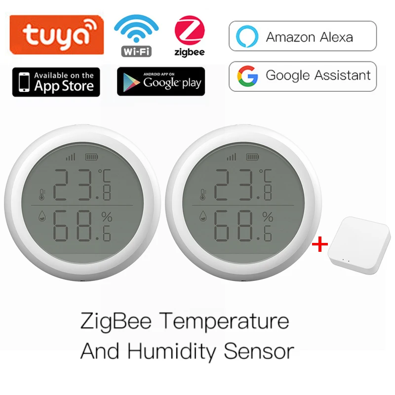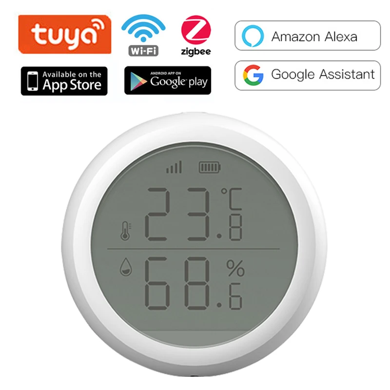 Умный датчик температуры и влажности ZigBee, термометр с ЖК-экраном для умного дома, с сигнализацией высокойнизкой температуры и влажности, Amazon Alexa Google Home