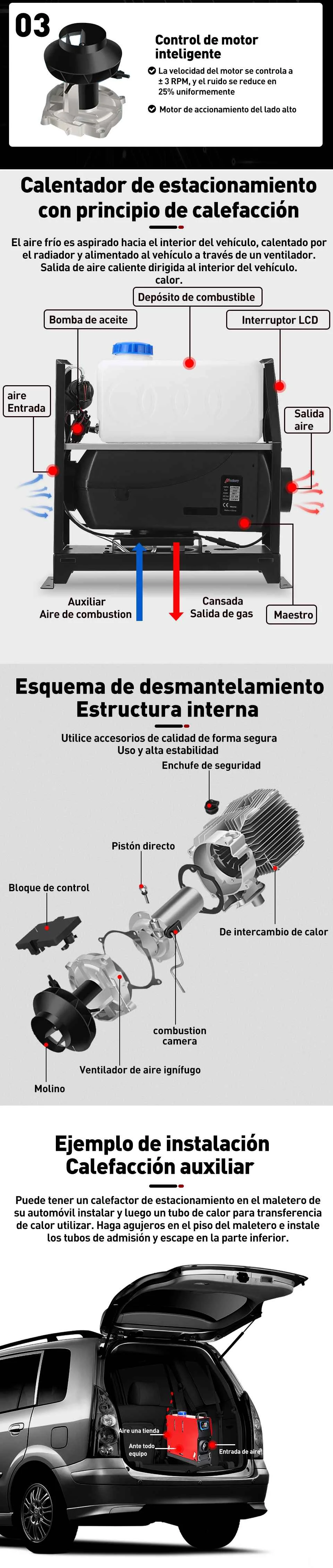 Особенности:-Может использоваться на больших высотах, 1500 метров над уровнем моря.-Нагреватель может быть применен для нагрева кабины грузовых автомобилей, грузовиков, rv, аккумуляторных батарей автомобилей и всех видов других транспортных средств.-Может устранить Мороз окна;-Экологически чистый продукт, низкий уровень выбросов, низкий расход топлива; Выхлопные газы нагревателя для удовлетворения требований к выбросам двигателя евро IV.-Компактная конструкция, легко устанавливается;-Может демонтировать новый автомобиль при замене транспортного средства.-Летучая технология, с помощью керамической вилки зажигания нагревание топлива испаряется в газ, быстрое зажигание, полное сгорание.-Использование передовой технологии автоматического управления с надежными ненормальными условиями эксплуатации.-Топливо, электричество, температура может быть установлена произвольно.-Новый воздушный Нагреватель-это второе поколение модернизированных продуктов, воздушное судно поддерживает Оригинальное экономичное и экономичное нагревание на основе характеристик увеличения функций дистанционного управления, чтобы сделать управление более простым и удобным. Для увеличения фиксированного кронштейна баланс крыльчатки вентилятора более стабильный, уменьшая шум.-Простота установки, экономичность и удобство. Может использоваться в качестве размораживания оконного стекла, но также для кабины, студии, каюты теплоизоляционных услуг.