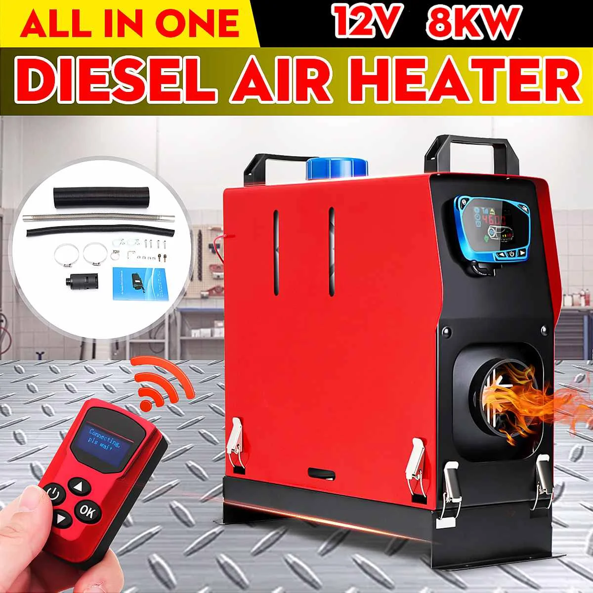 Автомобильный обогреватель все в одном, 8 кВт, 12 В, дизельный воздушный обогреватель с одним отверстием, Новый ЖК-монитор + пульт дистанционного управления парковочным обогревателем для автомобилей, грузовиков, автобусов, лодок, домов на колесах