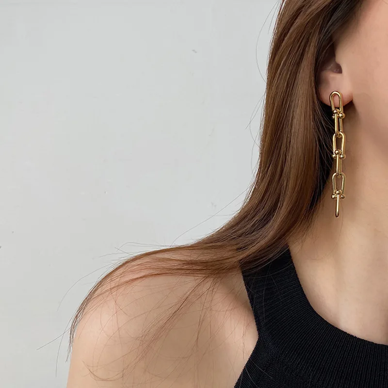 2021New Ретро металлическая цепочка серьги с длинной подвеской для женщин