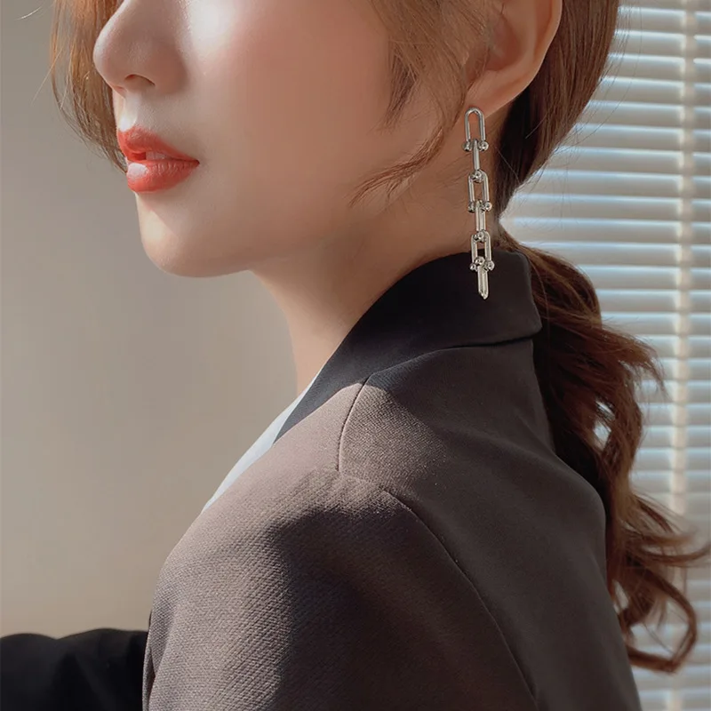 Новинка 2021, длинные Подвесные серьги в стиле ретро с металлической цепочкой для женщин, необычные серьги для рождественской вечеринки в стиле хип-хоп для девочек