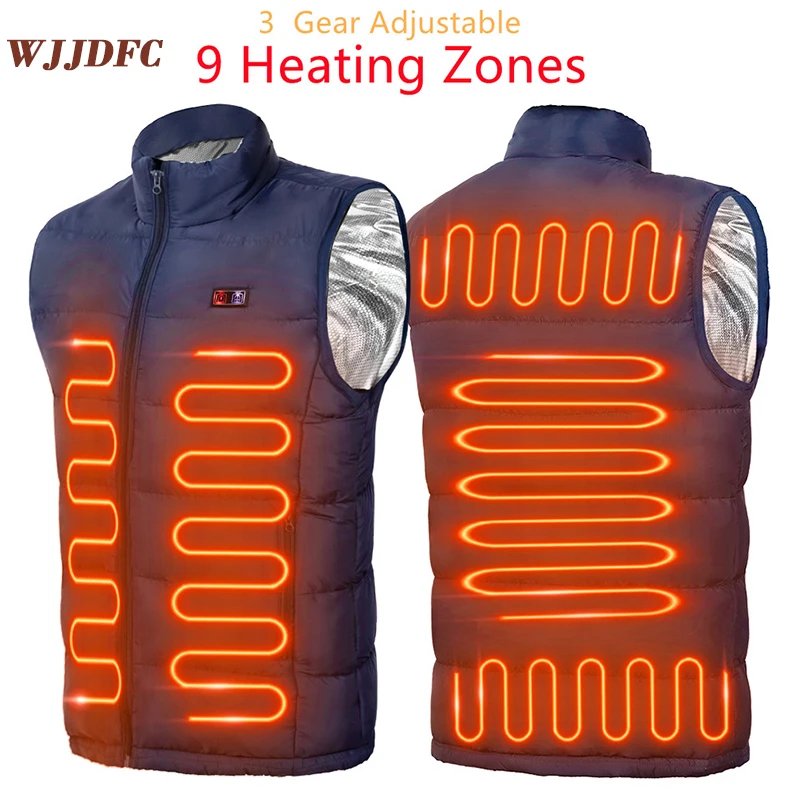 WJJDFC 9 мест с подогревом жилет для мужчин и женщин с Usb подогревом куртка с подогревом термальная одежда для охоты Зимняя мода Тепловая куртка Черный 6XL