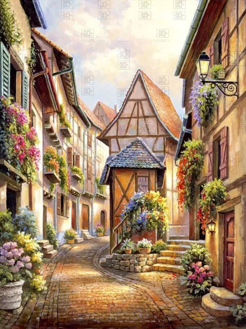 Алмазная живопись, уличная полноразмерная и круглая Алмазная вышивка, пейзаж, мозаика, картины, украшение для дома