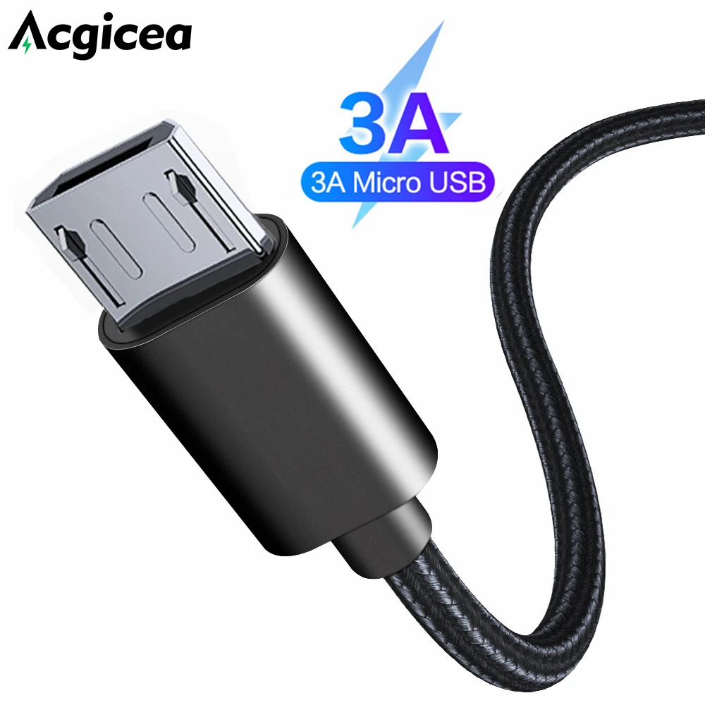 Кабель Micro USB Acgicea, 3 А, нейлоновый USB-кабель для быстрой зарядки для Samsung, Xiaomi, HTC, кабель для зарядки и передачи данных