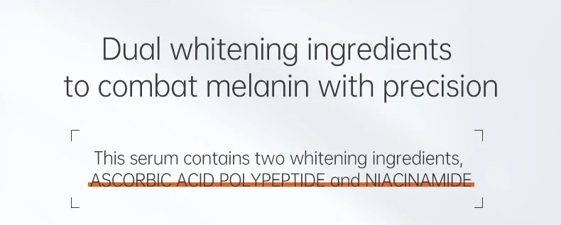 Двойной отбеливающий фактор точно ломает меланинЭта сыворотка содержит два отбеливающих фактора-полипептид аскорбиновой кислоты и НиацинамидАскорбиновая кислота полипептидИндекс безопасности:Также называется витамином С. Даже тонус кожи, предотвращает окисление, осветляет кожу.НиацинамидИндекс безопасности:Мягкий и не раздражающий, уменьшает меланинГиалуронат натрияУвлажняет кожу, корректирует метаболизм кожи