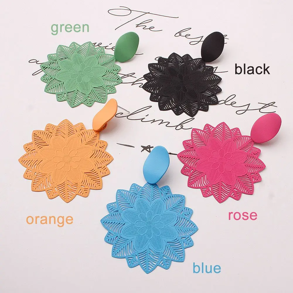 Новые женские серьги с крупным цветочным узором в винтажном стиле