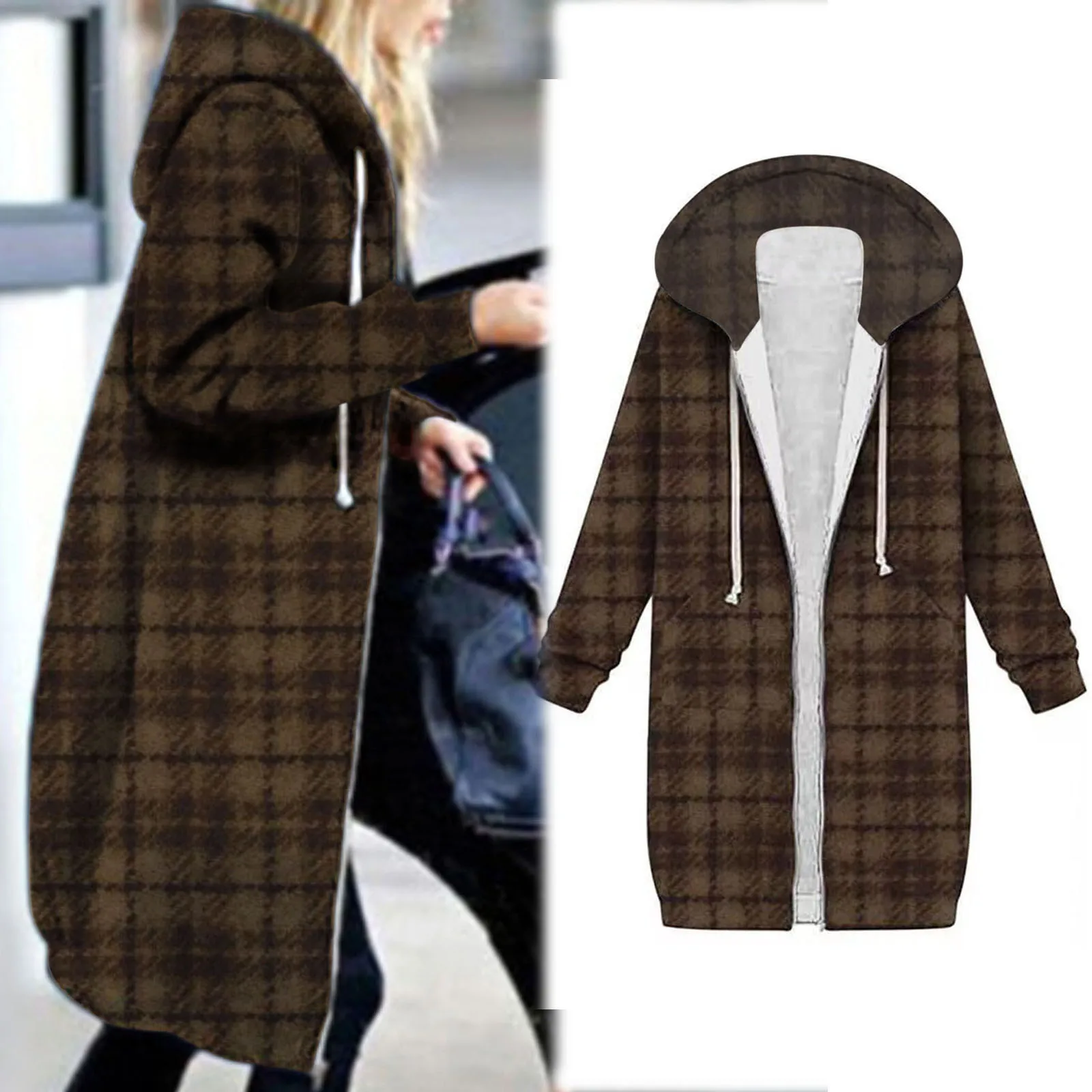 Женская флисовая толстовка с капюшоном, длинное пальто на молнии, элегантная верхняя одежда, зима 2022
