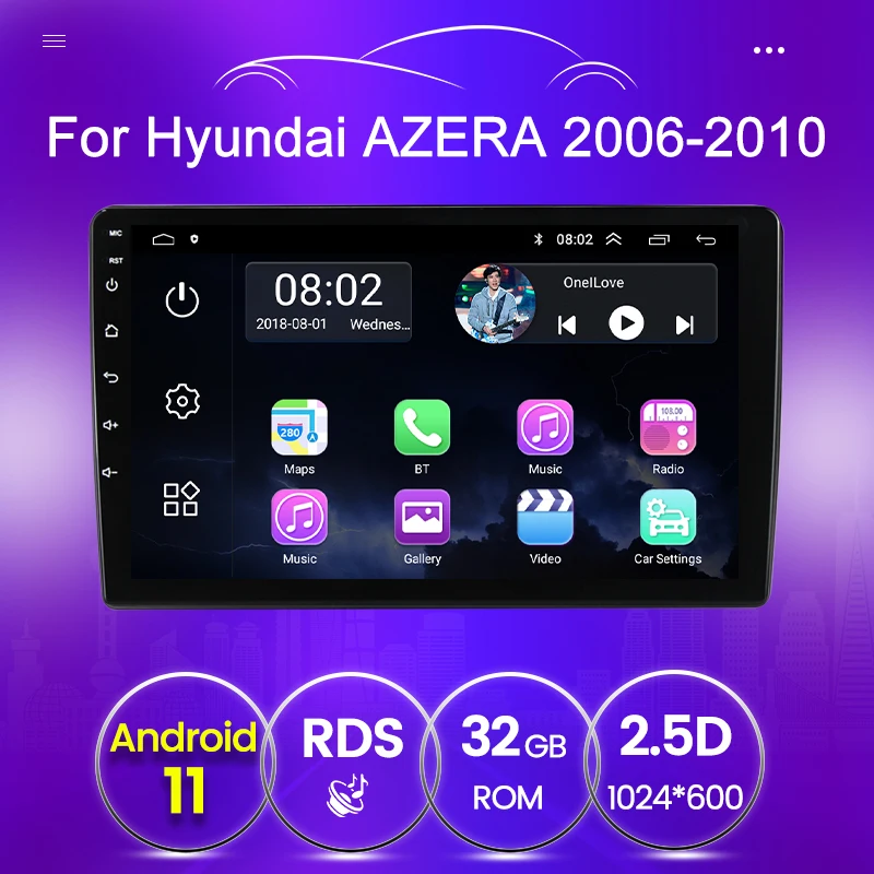 Автомагнитола 2 Din, Android 11, Wi-Fi, аудио, для Hyundai AZERA 2006, 2007, 2008-2010, Автомобильный мультимедийный видеоплеер с GPS-экраном, FM, BT, USB