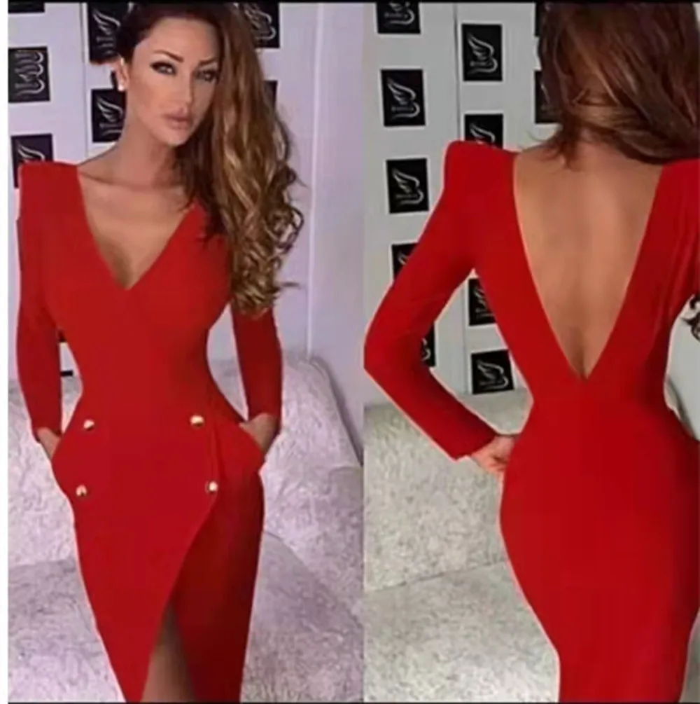 Женское длинное вечернее платье-русалка, красное платье из спандекс...