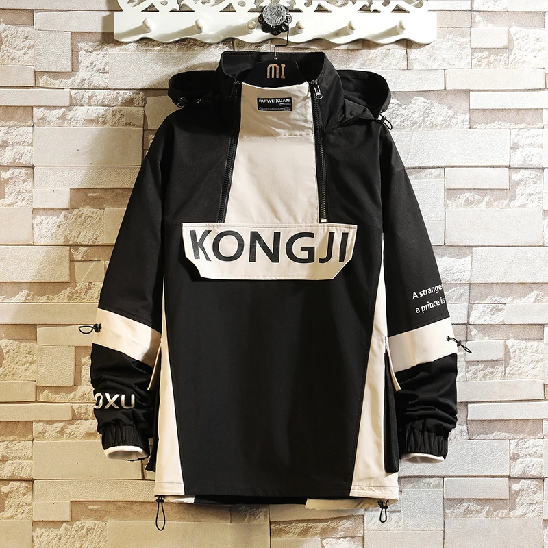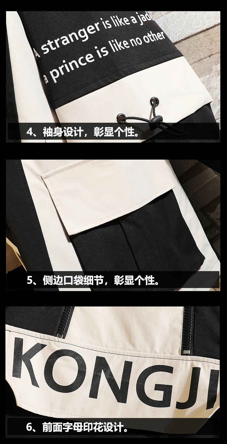 Осень весна 2022 толстовка с капюшоном мужская черная белая хип-хоп...