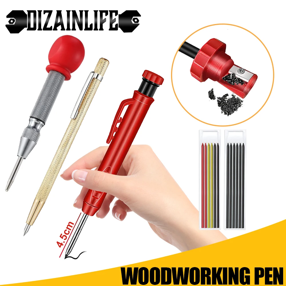 Твердый плотничный маркер, карандаш, встроенная точилка, инструмент для маркировки, механические карандаши с глубоким отверстием для деревообработки