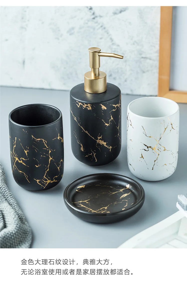 Набор керамических принадлежностей для ванной комнаты, диспенсер для мыла, держатель для зубных щеток, стакан для мыла, набор для мытья роскошного мрамора