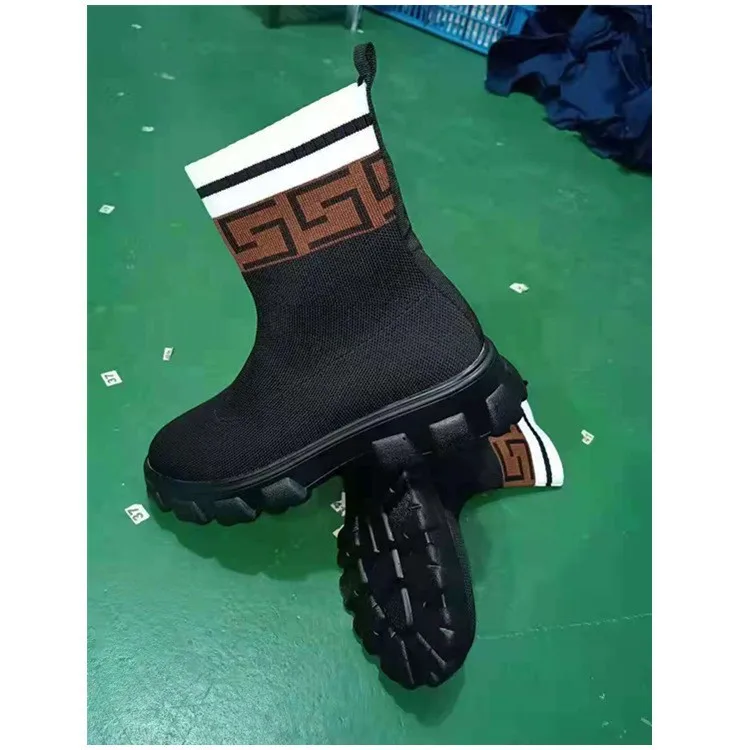 Женские ботинки, вязаные ботинки-носки, женская обувь на толстой по...