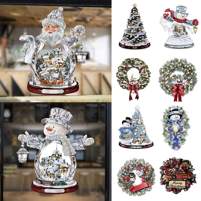 Рождественский венок, снеговик, Санта-Клаус, наклейка на окно, ново...