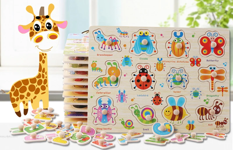 Деревянные головоломки Монтессори, доски для захвата рук, игрушки, ...