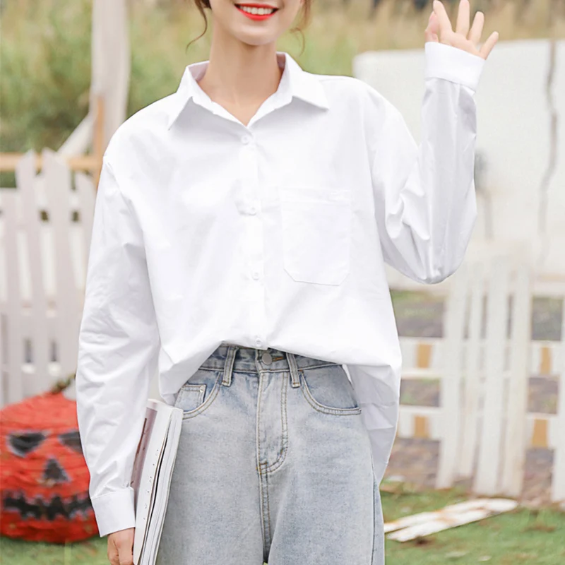 Женские базовые блузки, рубашка, топы с длинным рукавом белого цвета, новинка 2022, женские рубашки с лацканами в японском и корейском стиле JK для студенток