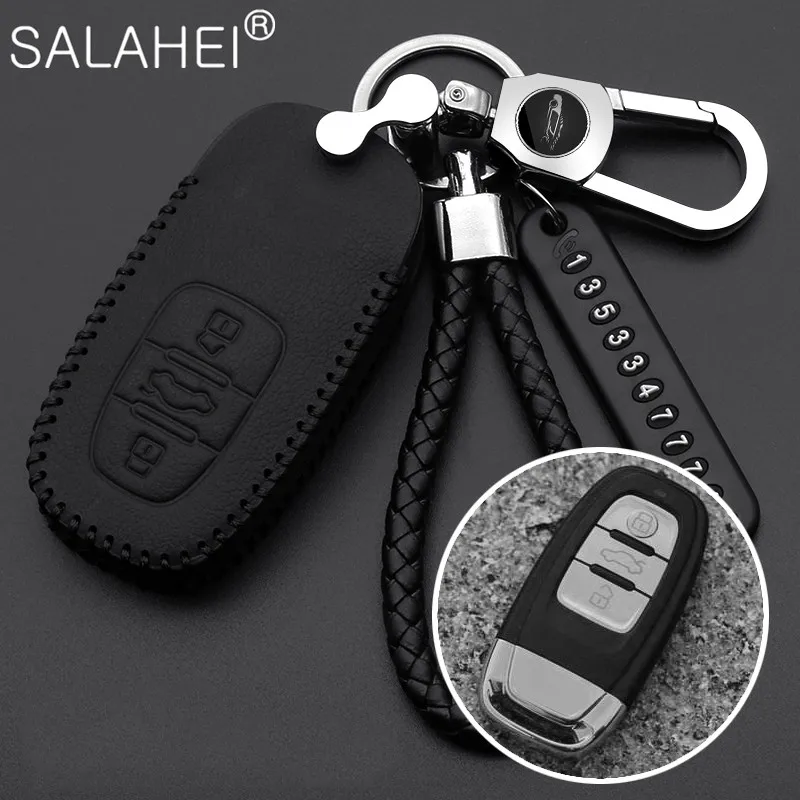 Кожаные чехлы для автомобильных ключей для Audi A3 A4 A5 A6 Q7 S4 S5 B9 A4L 4m TT TTS RS 8S A8 Quattro Q3 Q5 8P B6 B7 B8 C6 RS3 8L 8V S3