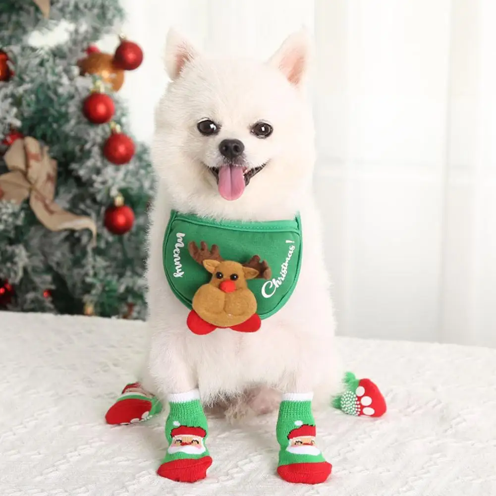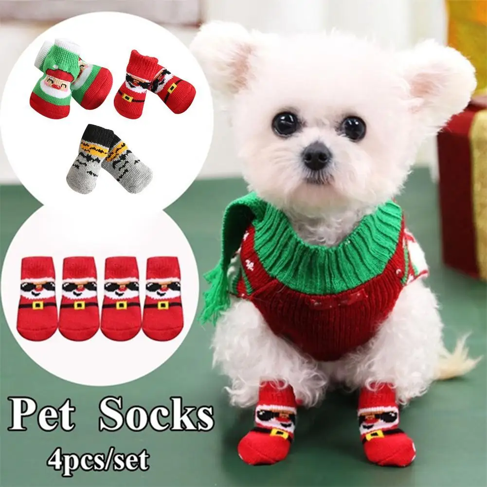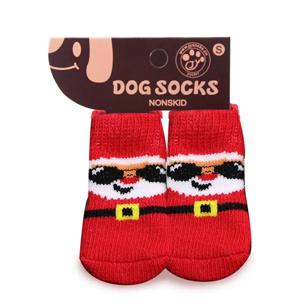 Зимние нескользящие носки для собак 4 шт.компл., Рождественская обу...