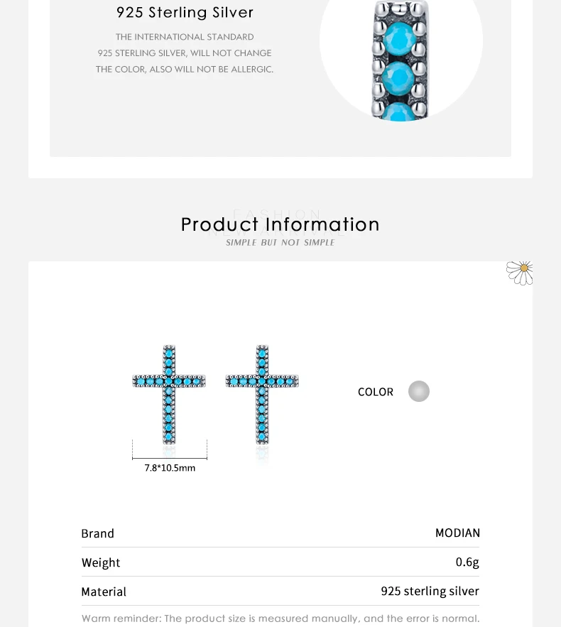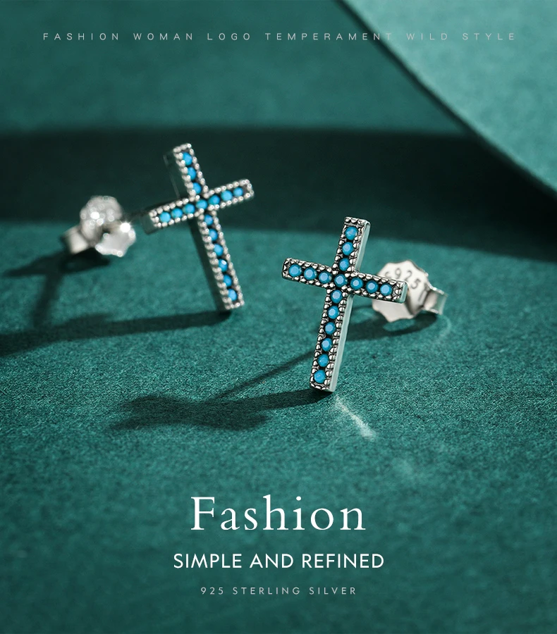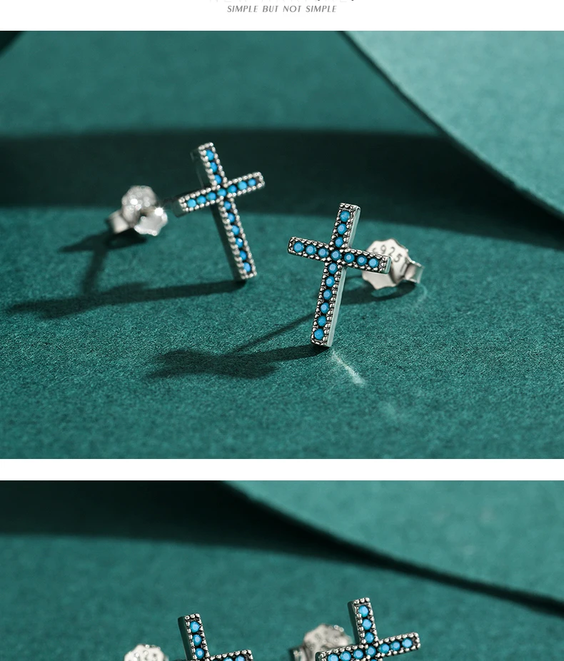 Серьги-гвоздики женские из серебра 925 пробы с бирюзовым покрытием