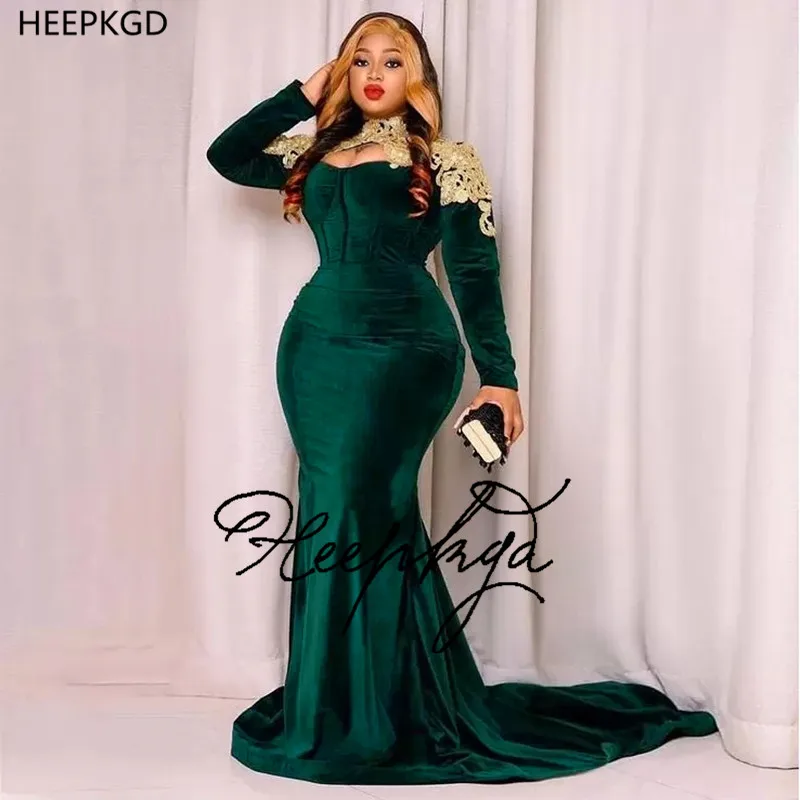 Темно-зеленое бархатное вечернее платье с длинным рукавом, Золотое кружевное черное женское официальное платье с вырезом и юбкой-годе для вечеринки