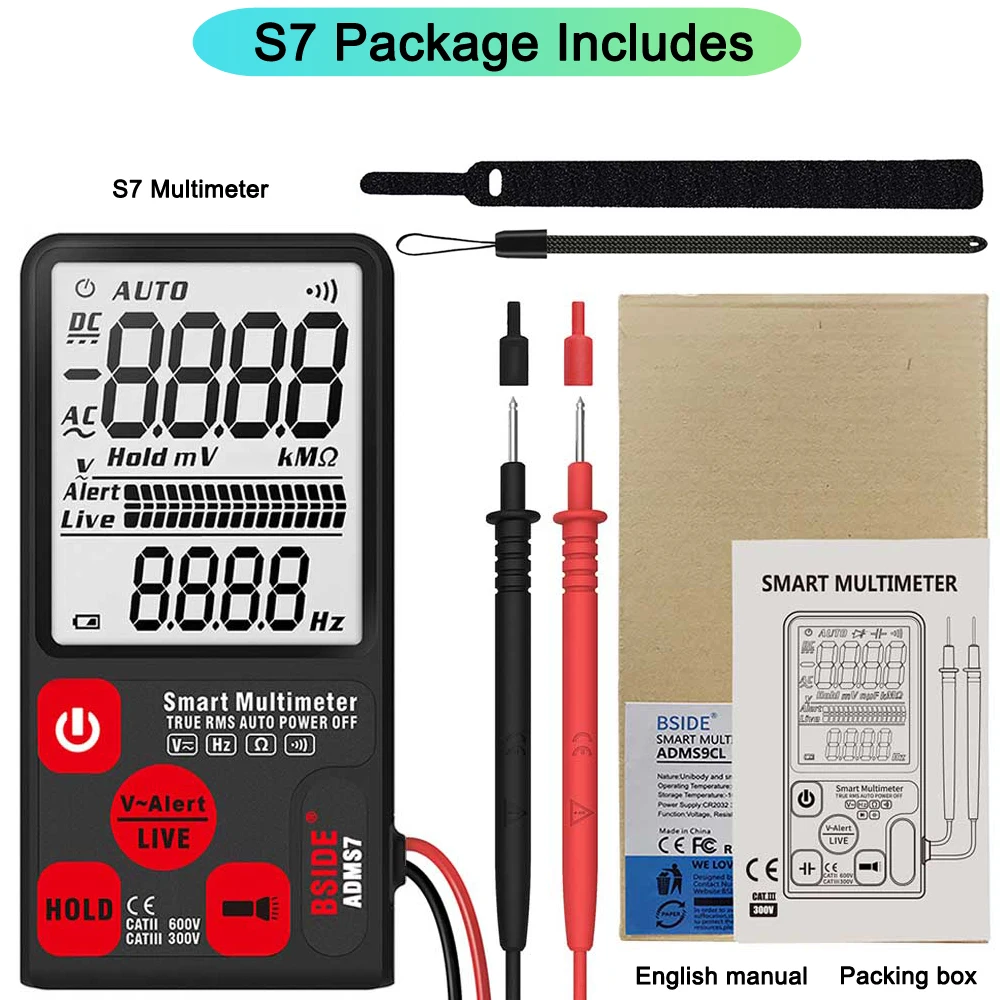 Цифровой мультиметр BSIDE, 9999 Т-RMS, 3,5 дюйма, ЖК-дисплей, цветной дисплей, тестер напряжения постоянного и переменного тока, емкость, Ом, диодный мультиметр, Бесконтактный индикатор напряжения, Гц
