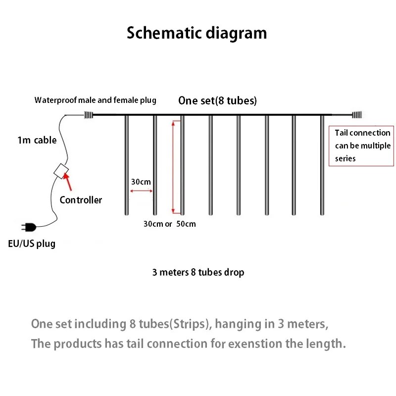 30 см 8 трубок Солнечный водонепроницаемый метеоритный дождь сосуль...