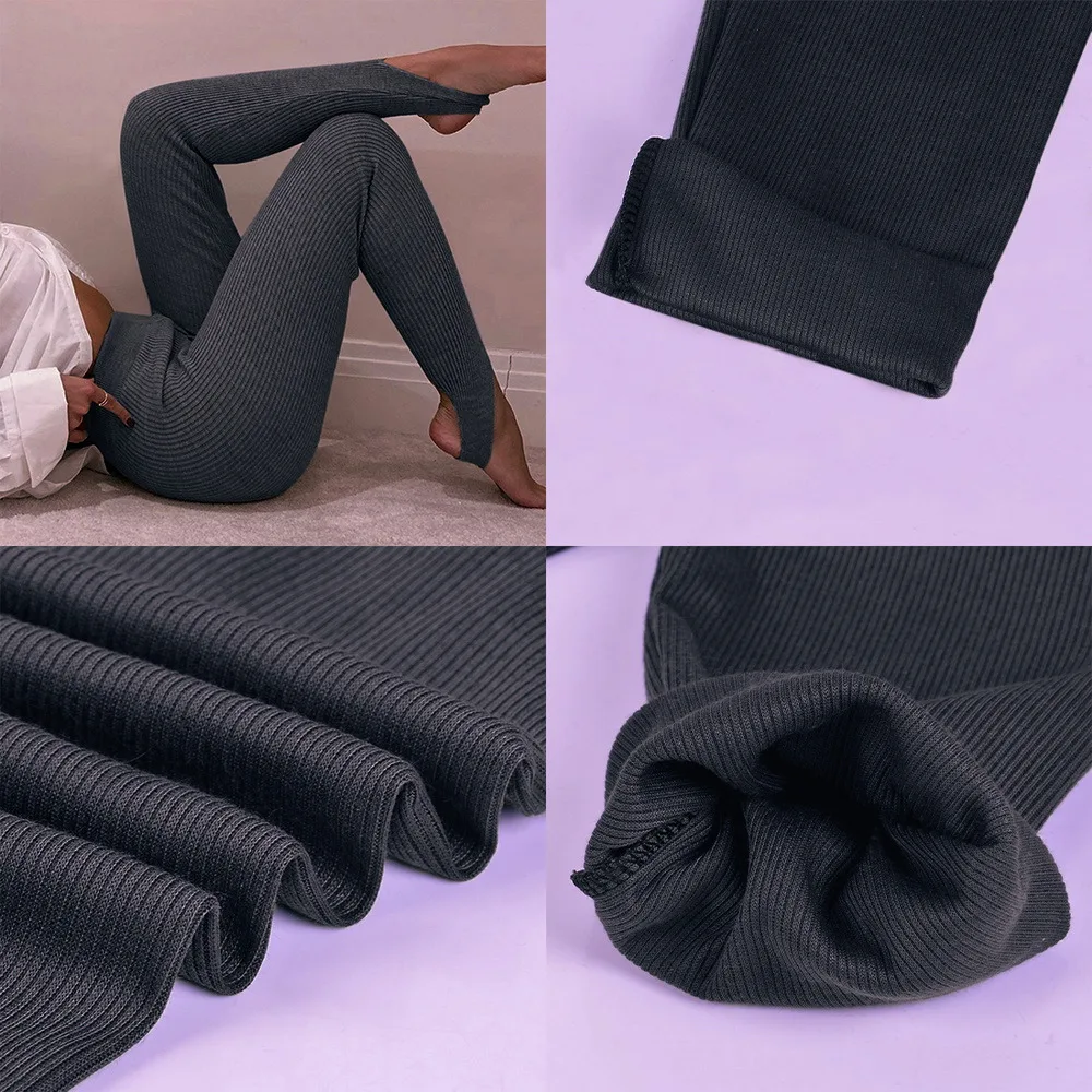Трикотажные обтягивающие леггинсы в рубчик, женские осенне-зимние модные эластичные леггинсы с высокой талией, наряд, леггинсы с лямками, Прямая поставка