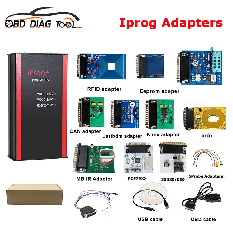 Лучший программатор Iprog Pro V87, полный комплект, коррекция ИММО, сброс подушек безопасности, RFIDMB IRPCF0801605 шт., адаптеры для зондов IPROG + бесплатная доставка
