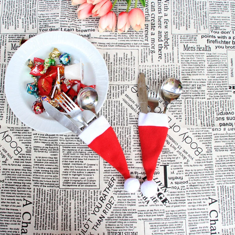 10 штук, рождественские колпачки, держатель для столовых приборов, ...