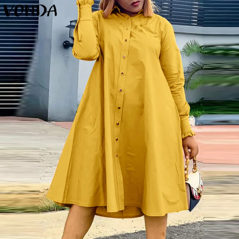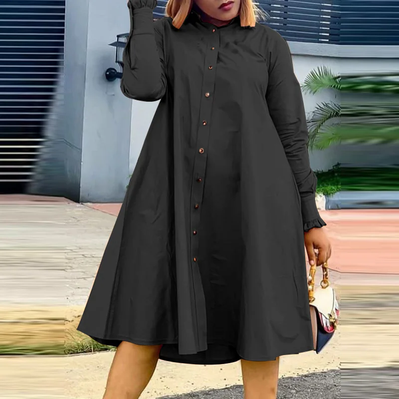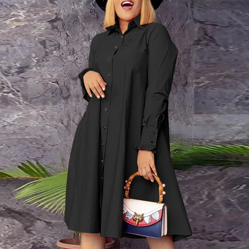 Женское платье-миди с длинным рукавом, воротником с лацканами