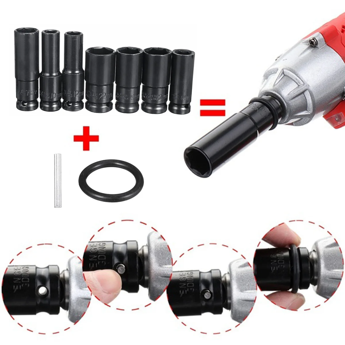 Набор ударных гаечных ключей, комплект 19 в 1 с шестигранной головкой и 7 втулками, 10-22 мм