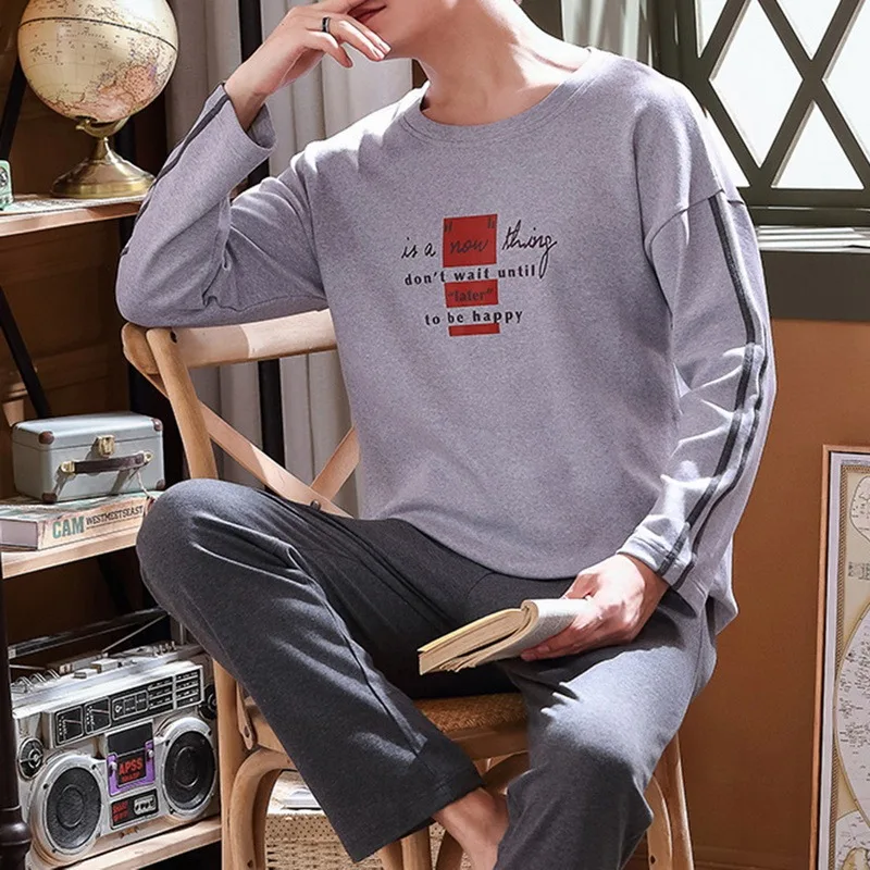 2021; Сезон весна-осень; Мужская пижама, хлопковые пижамы с длинным...