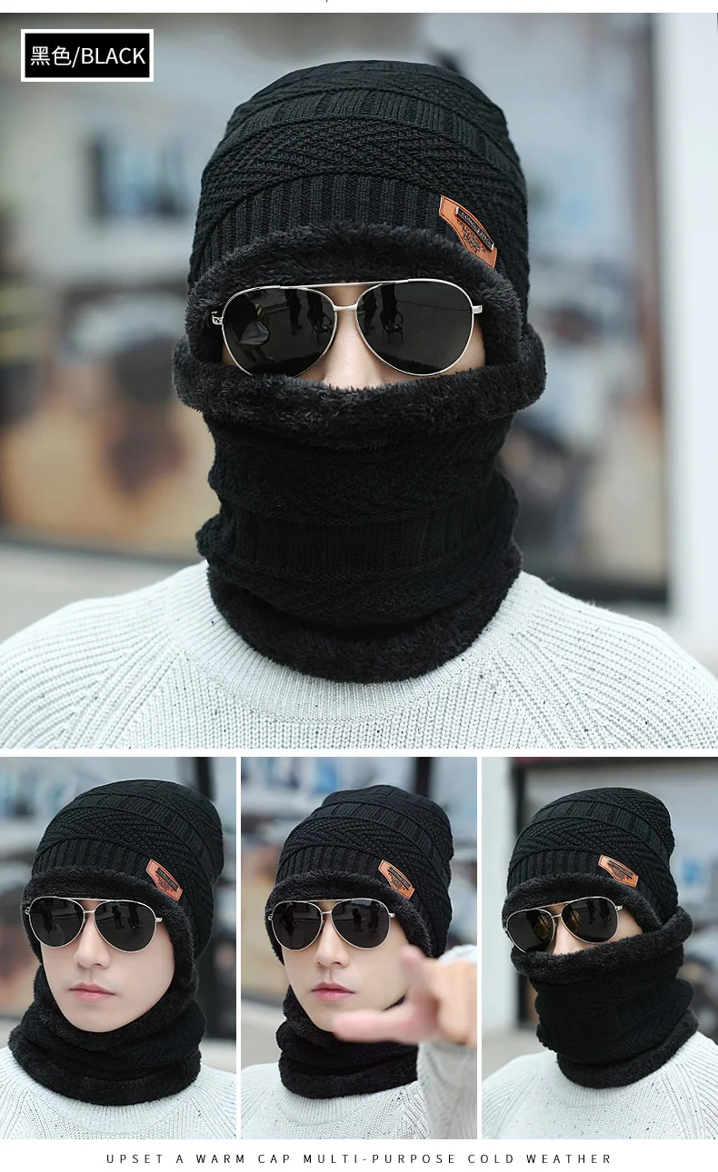Зимняя Шапка-бини для мужчин, вязаная шапка, Толстая шерстяная шапка-шарф для мужчин и женщин, Балаклава, шапка-маска, набор шапок, 2021