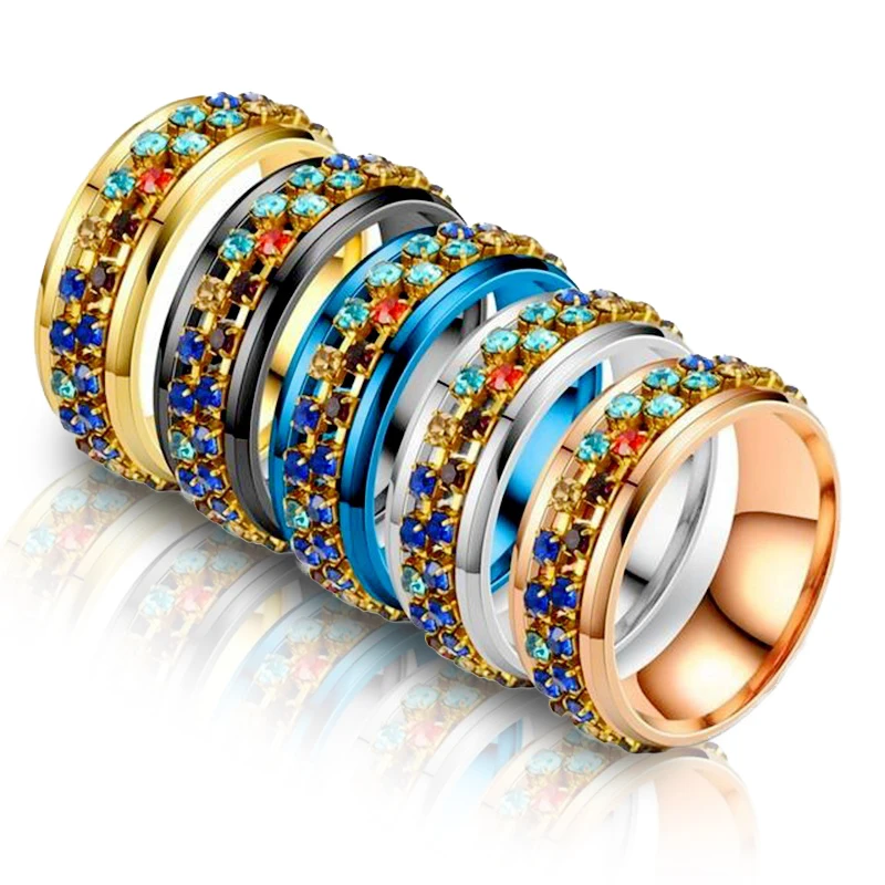 YADELAI беспокойство фрикдесанство вращающееся крутое черное кольцо титановая сталь шипованные женские парные стальные циркониевые кольца