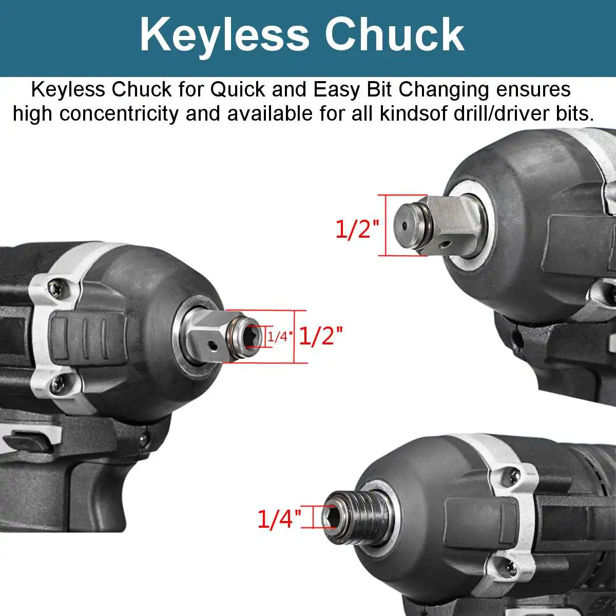 2 in1 18V 800N.m. Литий-ионный бесщеточный беспроводной электрический 1/2 "гаечный ключ 1/4" отвертка дрель Замена для батареи Makita