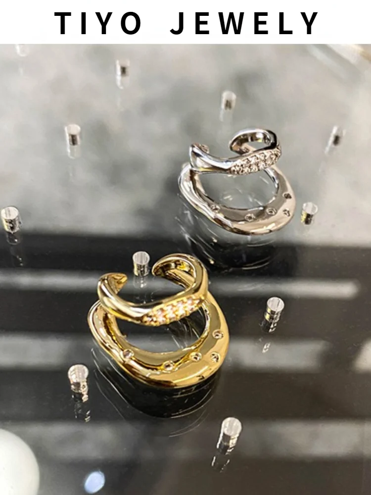 Металлические серьги TOYO, современные ювелирные изделия, новый дизайн 2021, высококачественные серьги-клипсы с золотым покрытием из циркония класса ААА, серьги-каффы для женщин, подарки