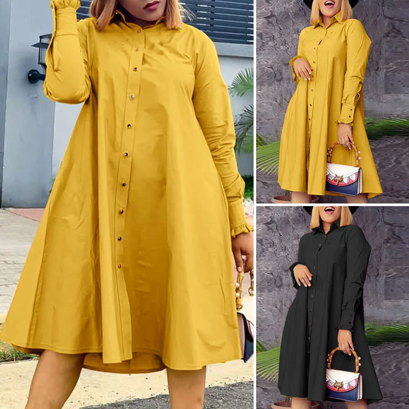Женское платье-рубашка с длинным рукавом, отложным воротником и Бок...