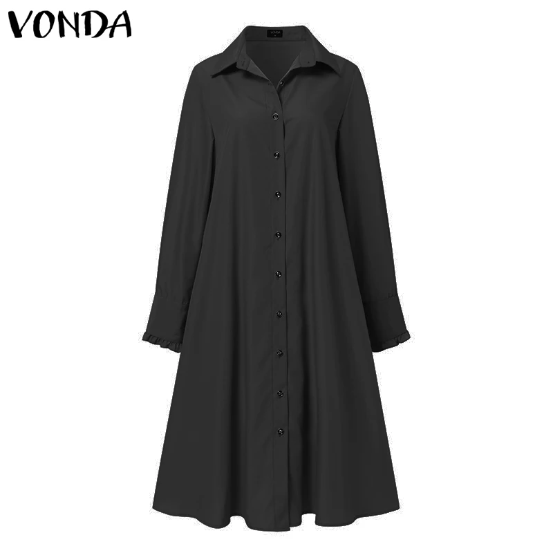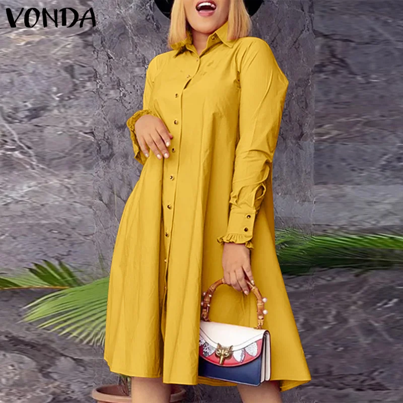 2022 VONDA осеннее платье-рубашка, повседневные однотонные платья с...