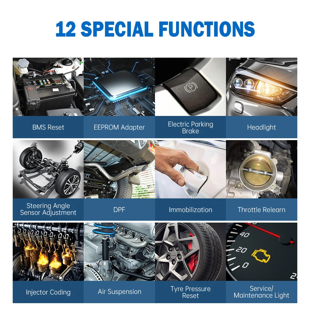 ■ 12 видов специальных функций сброса * обслуживание сброса масла: выполняет сброс для системы эксплуатации моторного масла, которая вычисляет оптимальный интервал изменения срока службы масла в зависимости от условий вождения автомобиля и климата, И выключает предупреждающий светильник; * электронный стояночный тормоз (EPB) обслуживание: Поддерживает электронную тормозную систему безопасно и эффективно, деактивируя и активируя тормозную систему управления, помогая в управлении тормозной жидкостью, открывании и закрывании тормозных колодок и устанавливая тормоза после замены диска или колодки, И т. Д. * датчик угла поворота руля (SAS) Сервис: выполняет калибровку для датчика угла поворота руля (SAS), Который постоянно хранит текущее положение рулевого колеса в качестве прямого положения вперед в датчике угла рулевого управления EEPROM. После успешного завершения калибровки автоматически очищается память датчика угла поворота руля. * Система контроля давления в шинах (TPMS) Обслуживание: функция обслуживания TPMS включает отображение сенсорных идентификаторов из ECU транспортного средства, ввод идентификаторов замены датчика TPMS и датчиков тестирования * служба DPF: выполняет множество функций для дизельной системы фильтров твердых частиц. Инструмент будет управлять регенерацией DPF, заменой компонентов DPF после замены блока управления двигателем. * Сброс BMS: повторное соответствие модулю управления и датчику моторизования для более точного обнаружения батареи, четкая оригинальная информация о низком заряде батареи и предотвращение обнаружения ложной информации о соответствующем модуле управления. * IMMO сервис: позволяет отключить ключи от утерянного транспортного средства и запрограммировать сменный брелок. EEPROM адаптер: работает со старыми моделями Автомобилей, когда это автомобильные чипы или ключ нужно сделать программист