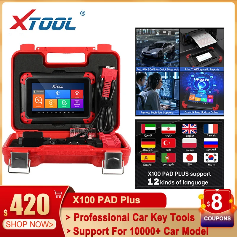 Введение XTOOL X100 PAD Plus-это Усовершенствованный инструмент для сканирования планшета на базе операционной системы Android X100 PAD Plus-это планшет с новейшими технологиями для выполнения ключевых программ, диагностики, сброса масляного обслуживания, светильник сервисный светильник с зубчатым ремнем, сброс давления в шинах, аварийный светильник, сброс EPB, сброс дроссельной заслонки, Сброс DPF, Сброс батареи, Калибровка угла рулевого управления полная система s диагностическое приложение позволяет ссылку данных на электронную систему управления испытательного транспортного средства для диагностики транспортного средства. Приложение выполняет функциональные тесты, извлекает диагностическую информацию о транспортном средстве, такую как коды неисправностей и событий и живые данные для различных систем управления транспортным средством, таких как ABS, SRS, двигатель, трансмиссия, тормозная система, система выбросов, топливная система, светильник, система стеклоочистителя и т. Д.