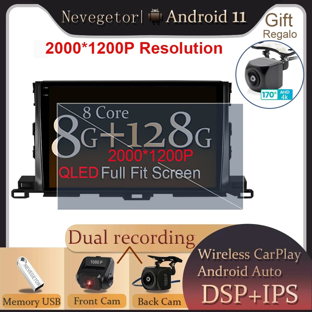 2000*1200P Автомобильный мультимедийный 10,2 "HD сенсорный экран Android 11,0 для Toyota Highlander Radio 2015 2016 2017 2018 GPS DSP BT5.0 MAX10