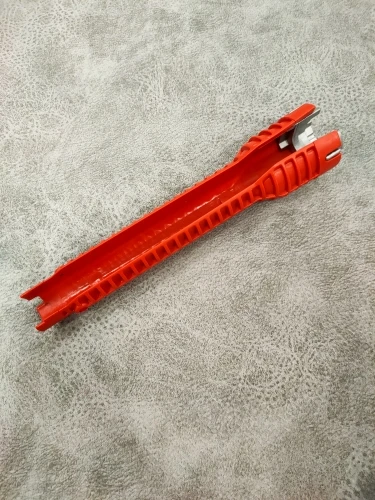 Очень быстрая доставка. Меньше чем за 2 недели. На кручение хлипковат, но для сантехнических шлангов самое то (что бы не перетянуть). Со своей функцией справляется. Давно такой хотел ключик, даже сам на 3D принтере планировал напечатать из нейлона. Цена упала, проще стало купить. К покупке рекомендую.