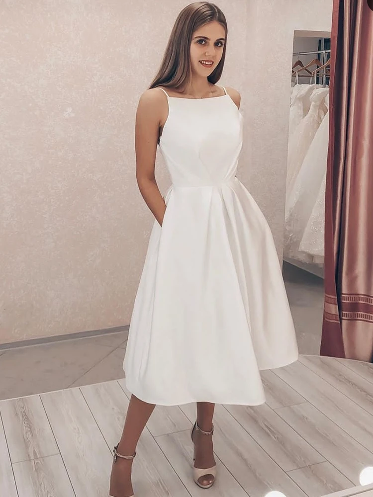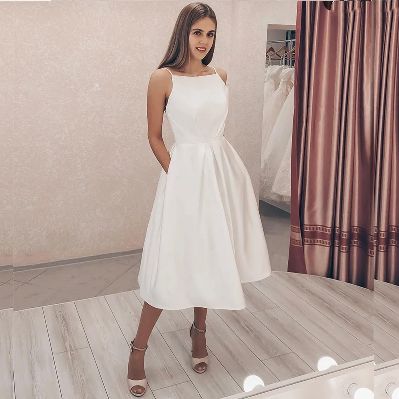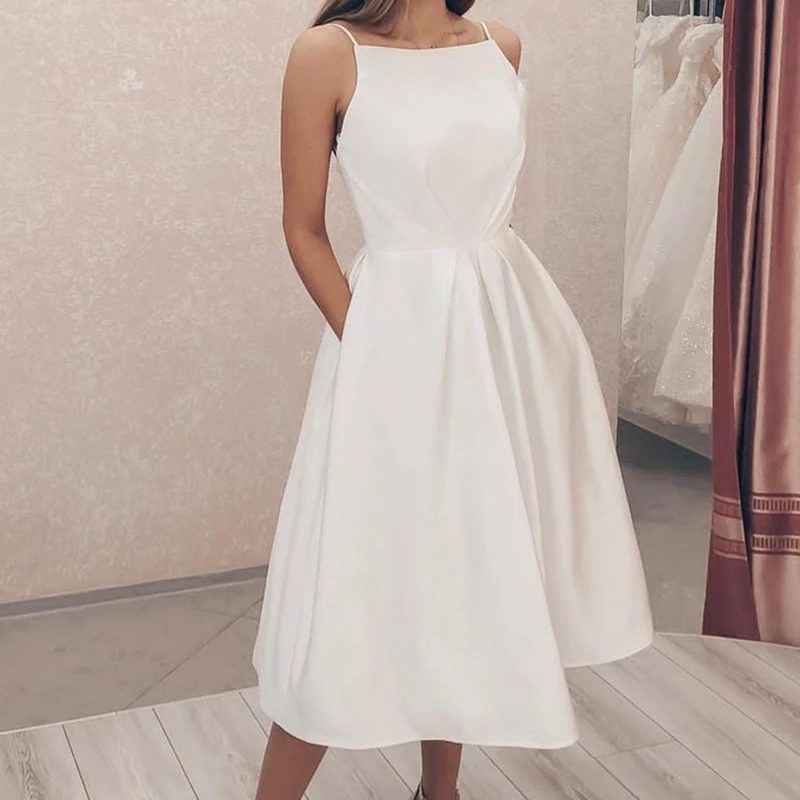 Женское Короткое свадебное платье, блестящее платье до колена с карманом, очаровательное недорогое пляжное платье без рукавов, 2022
