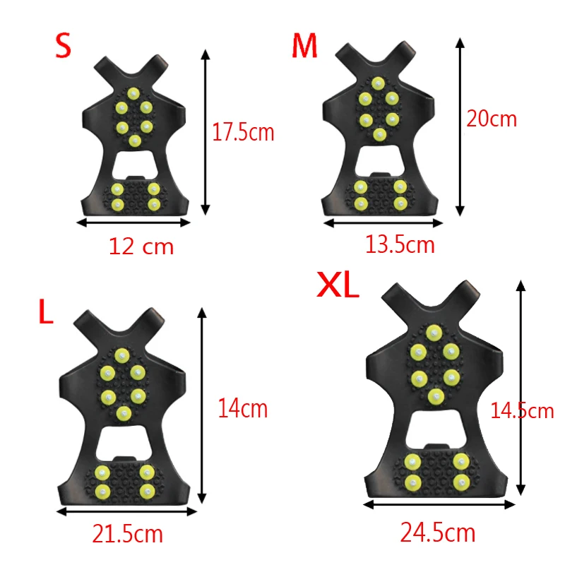Описание Высококачественные непромокаемые шипы под мячом и пяткой вашей стопы обеспечивают превосходное сцепление с гладкими поверхностями, что облегчает ходьбу по скользкому льду или снегу. Это действительно чудесная противоскользящая обувь на выбор. Идеально подходит для зимних видов спорта Прогулки, походы по льду и снегу. Выдерживает температуру ниже-40 °C. Легко включается и выключается. Особенности: 100% новые качественные товары Товар: ледяные ручки Материал: силикон Цвет: как на фотографии Тип: 10 стальных шпилек Размер: S, M, L,XL S:175*120*3 мм М:200*135*3 мм L:215*140*3 мм XL:245*145*3 мм Посылка включает в себя: 1 пара * ледяные ручки Примечание: 1. Реальный цвет товара может быть s светильник ly отличаться от изображений, размещенных на веб-сайте, по причине многих факторов, таких как яркость вашего монитора и светильник яркости 2. Пожалуйста, допускайте небольшое отклонение для данных измерений Надеюсь, вы понимаете, спасибо!