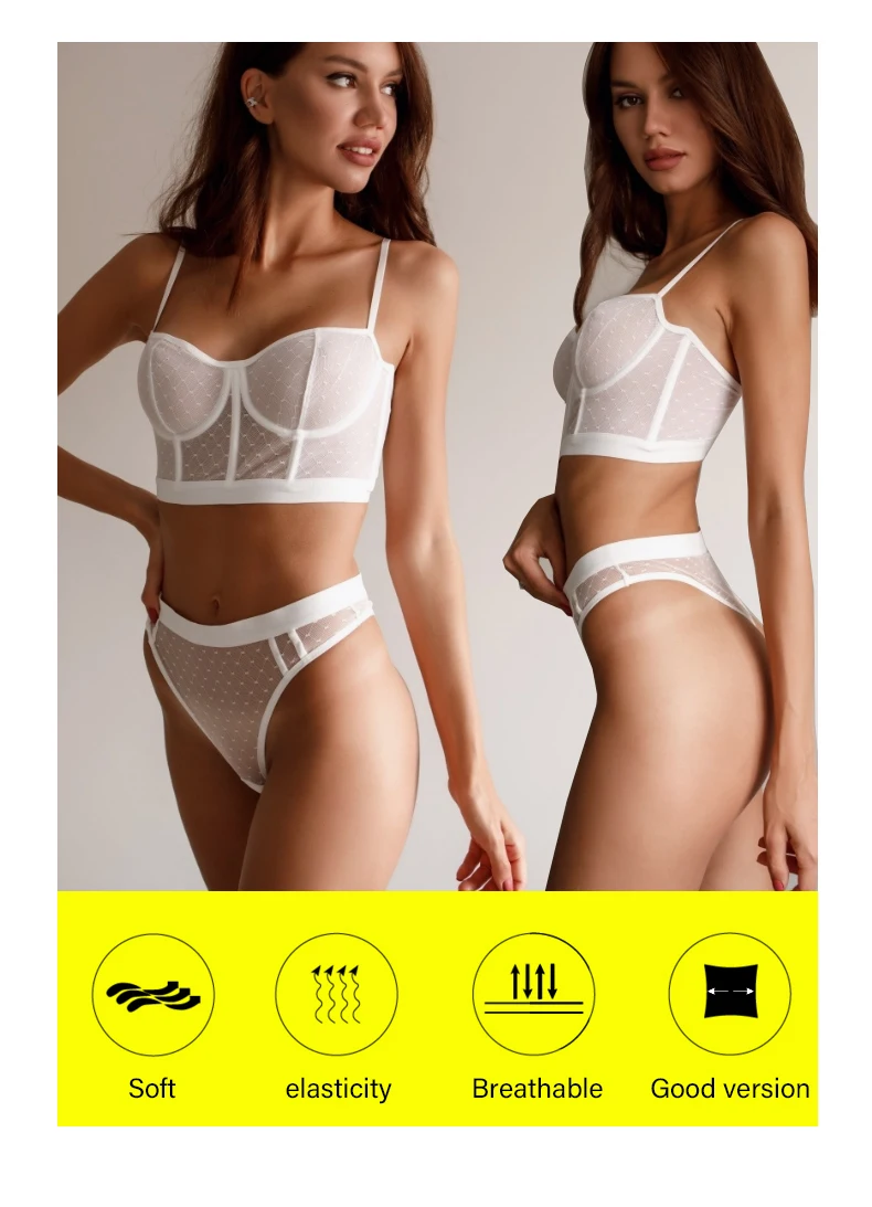 Комплект сексуального женского нижнего белья в сеточку, в горошек, прозрачное короткое белье, комплекты для ухода за кожей, сексуальный кружевной бюстгальтер, Короткие комплекты, эротическое интимное белье