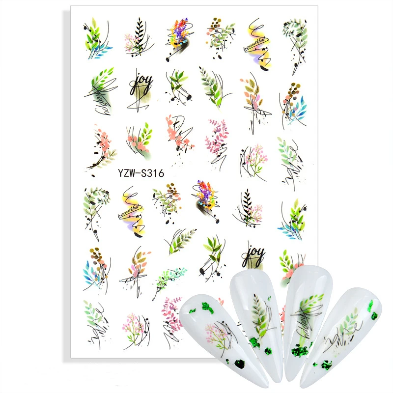 3D весенний лист стикер для дизайна ногтей цветы Букет DIY слайдер ...