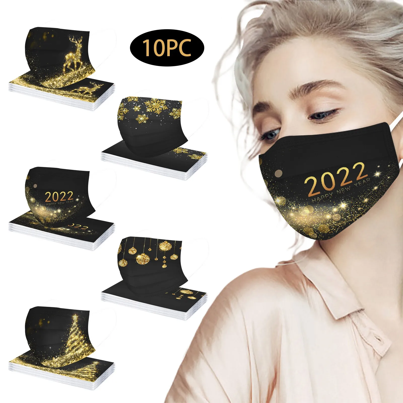 10 шт., одноразовые маски для лица для взрослых с новым годом 2022