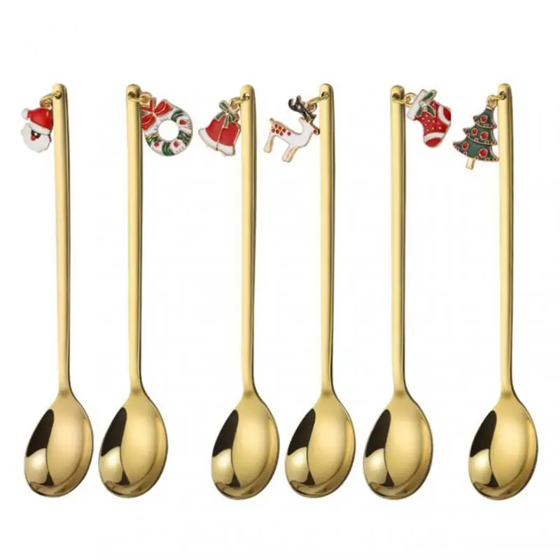 Новогодние рождественские ложки из нержавеющей стали 2021, ложка для кофе для вечерние с рождественским кулоном, рождественские украшения, подарок на Рождество