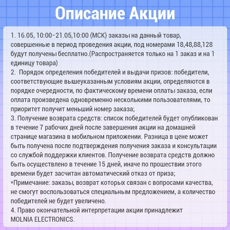 MOLNIA ELECTRONICS - Надежность 97.5%