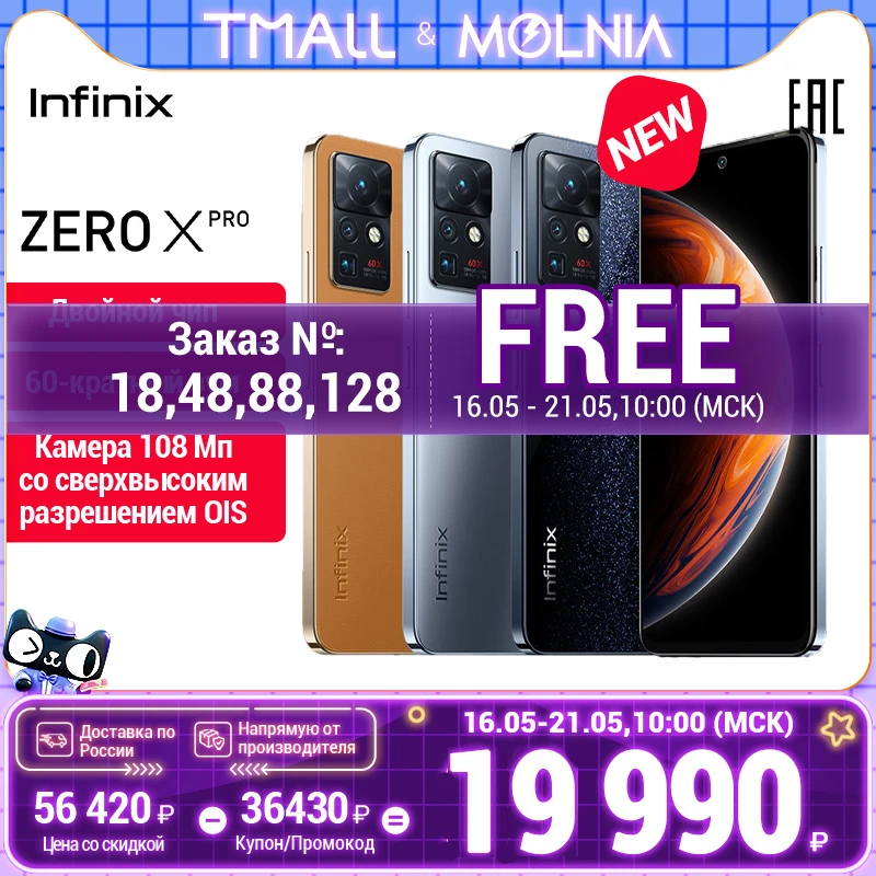 Смартфон Infinix Zero X Pro, 8+128GB, Двойной чип, 60-кратный зум, Камера 108 Мп со сверхвысоким разрешением OIS, Molnia